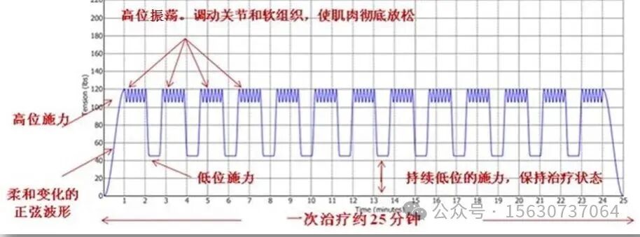 牵引:椎间隙压力下降值:从+90mmHg降至+30mmHg